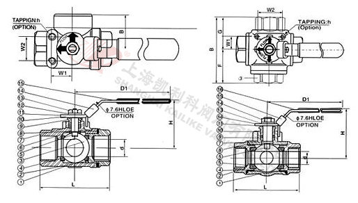 上海凱利科為您提供Q14F、Q15F三通內螺紋球閥結構圖,本結構圖希望對您有所幫助。