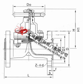 4、閥體與蓋被中間隔膜隔開(kāi),使得隔膜上方的閥蓋,閥桿零件不受介質(zhì)侵蝕;